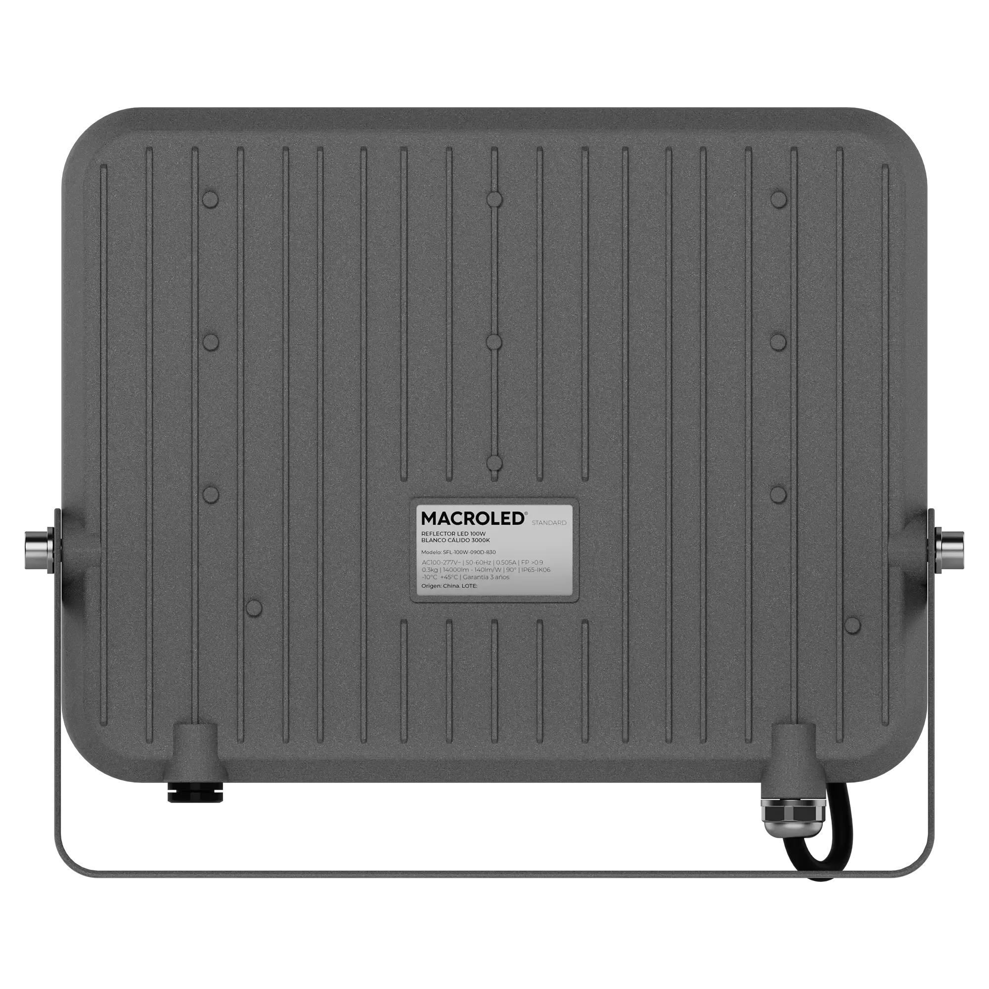 REFLECTOR LED MACROLED STANDARD 100W, ANGULO DE APERTURA 90°, AC100-277V, CALIDO 3000K, IP65, CRI 80, IK08
